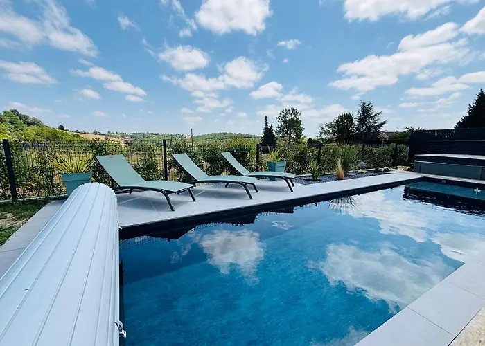 Maison Des Coteaux Goyrans dysponuje tarasem z widokiem na górę, 28 min jazdy od lotniska Toulouse–Blagnac. Willa oferuje gościom relaksujące doświadczenie z jacuzzi.